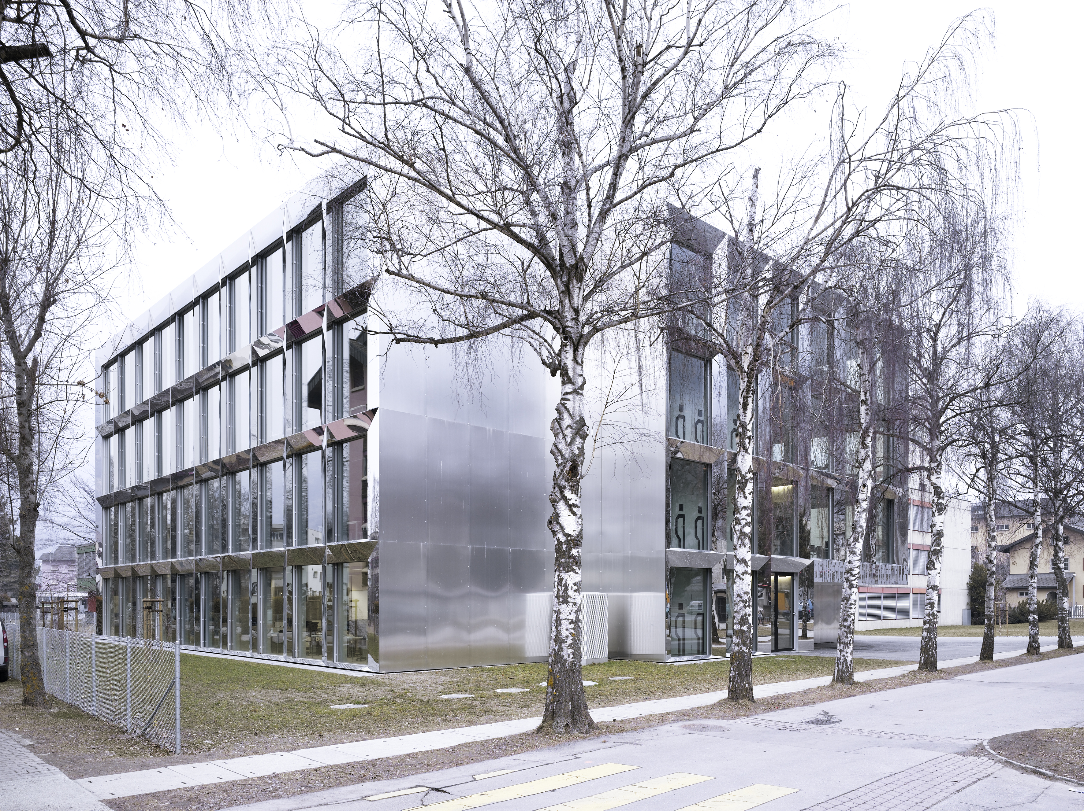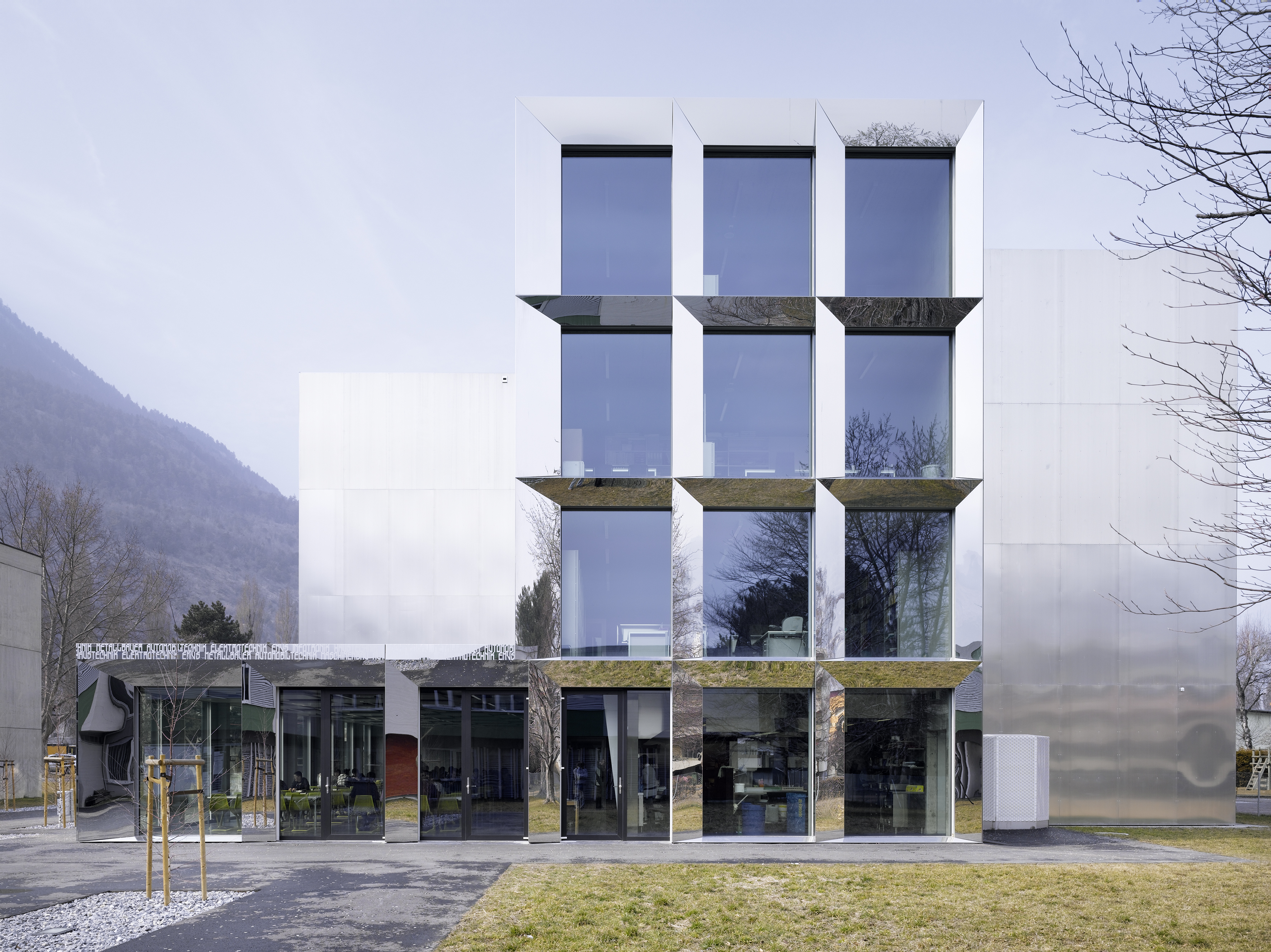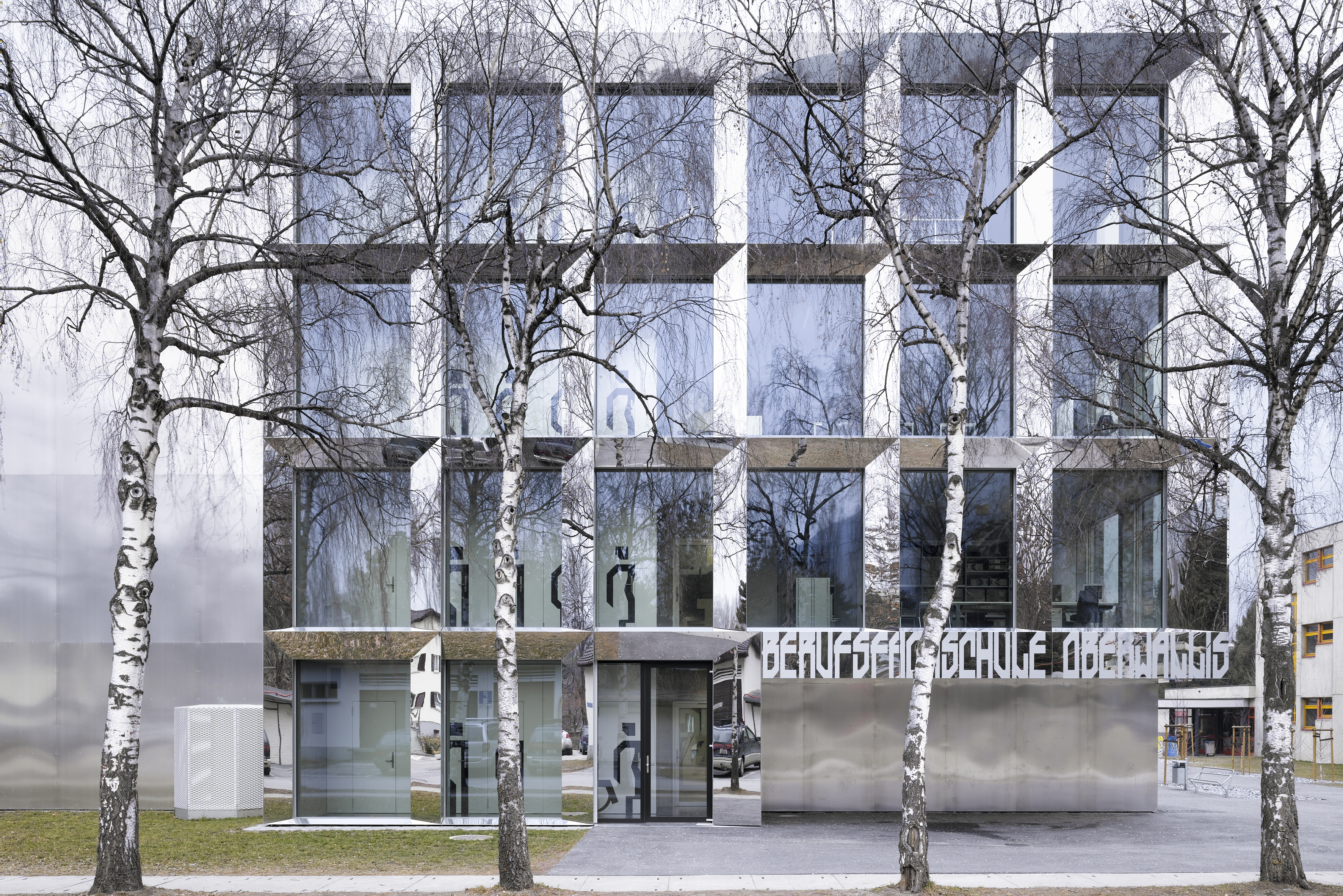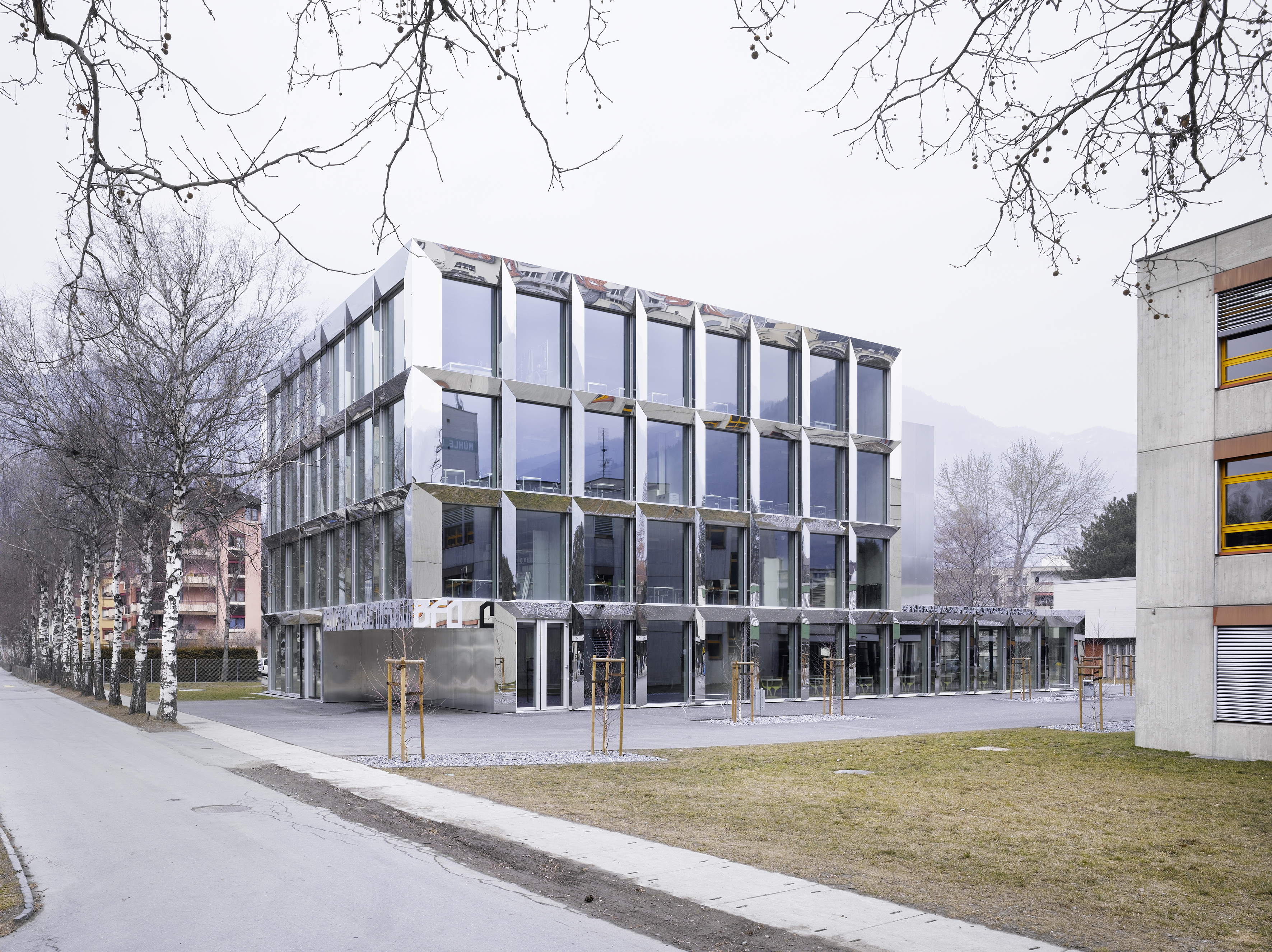 Le nouveau bâtiment de classes de l’école professionnelle de Viège offre une transformation du contexte et permet de connecter les écoles du quartier, de créer un campus de formation et d’intégrer les nouveaux ateliers et les salles de gymnastique. Associée au nouveau bâtiment, la place d’école devient l’espace de référence du campus. La volumétrie du bâtiment s’inspire des volumétries des écoles alentours, une compacité découpée permettant la progression d’un volume de deux niveaux à un volume de quatre niveaux.
