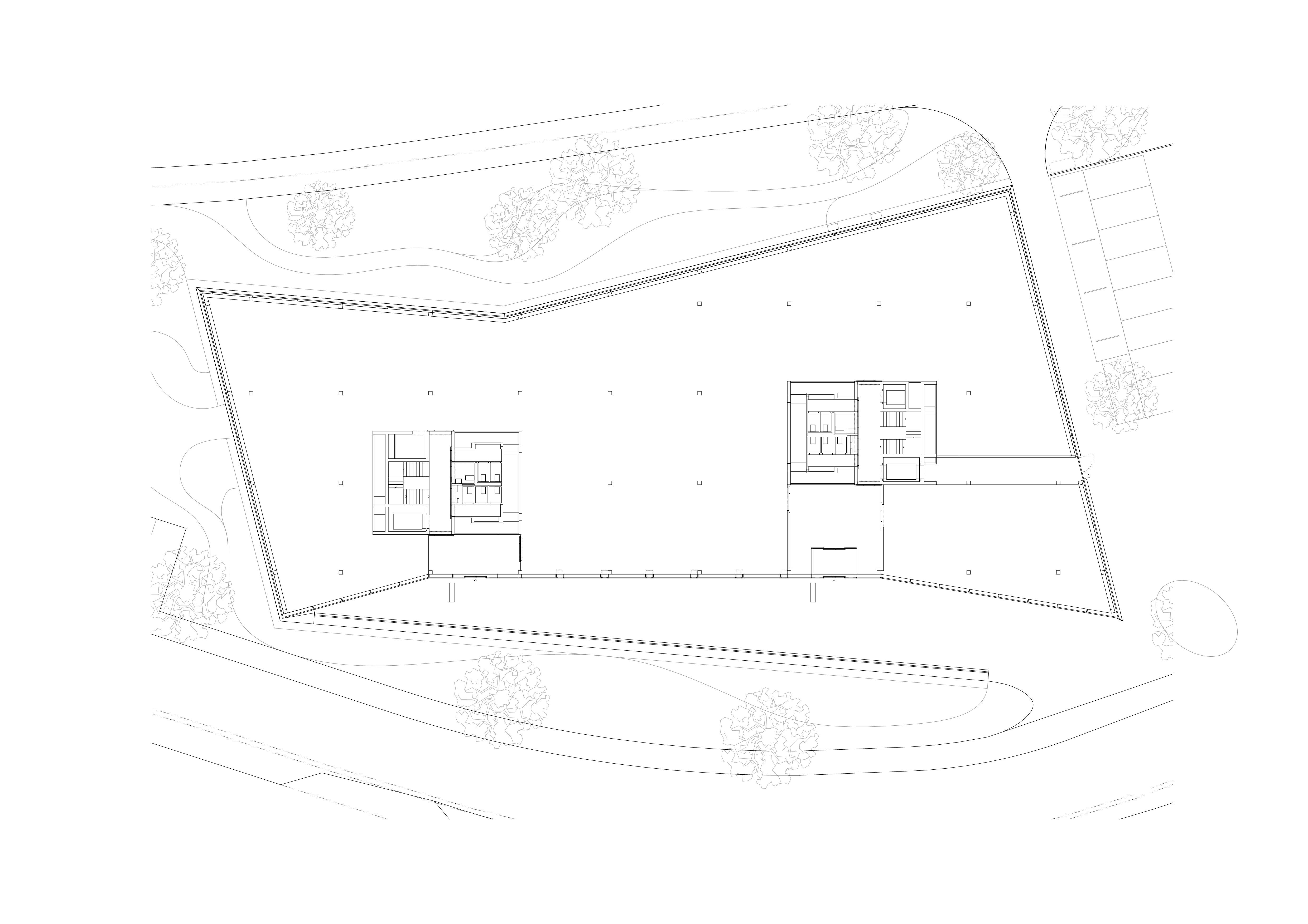 L’Université de Lausanne, l’EPFL et le CHUV, sur le site d’Épalinges, développe son parc scientifique et technologique dédié aux sciences de la vie en l’agrandissant avec six nouvelles constructions entre 2015 et 2024. C’est dans ce contexte que l’immeuble « Serine » contribue à l’élargissement du campus vers l’ouest en se connectant à la route de Berne. La morphologie épouse le contour de la route cantonale par une cassure distinctive. À l’opposé, côté route de la Corniche, le volume se dilate afin d’offrir un parvis à l’entrée des piétons du campus.